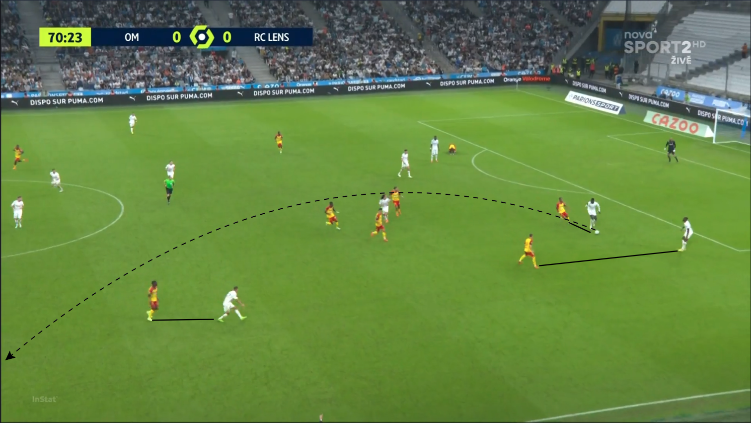 Lo interesante de entender aquí es la osadía de Lensois desde los primeros minutos del partido en el Vélodrom.